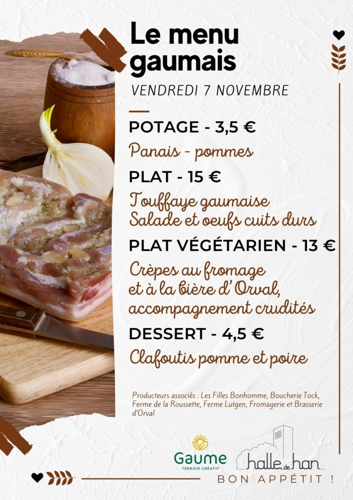 Le Marché de la Halle de Han (Tintigny) invite chaque semaine des producteurs locaux à rencontrer leurs clients en circuit court. Durant le marché, notre Entreprise de formation par le travail (EFT) propose un menu, à déguster dans la partie restaurant ou à emporter, réalisé par les stagiaires en formation, avec des produits locaux.