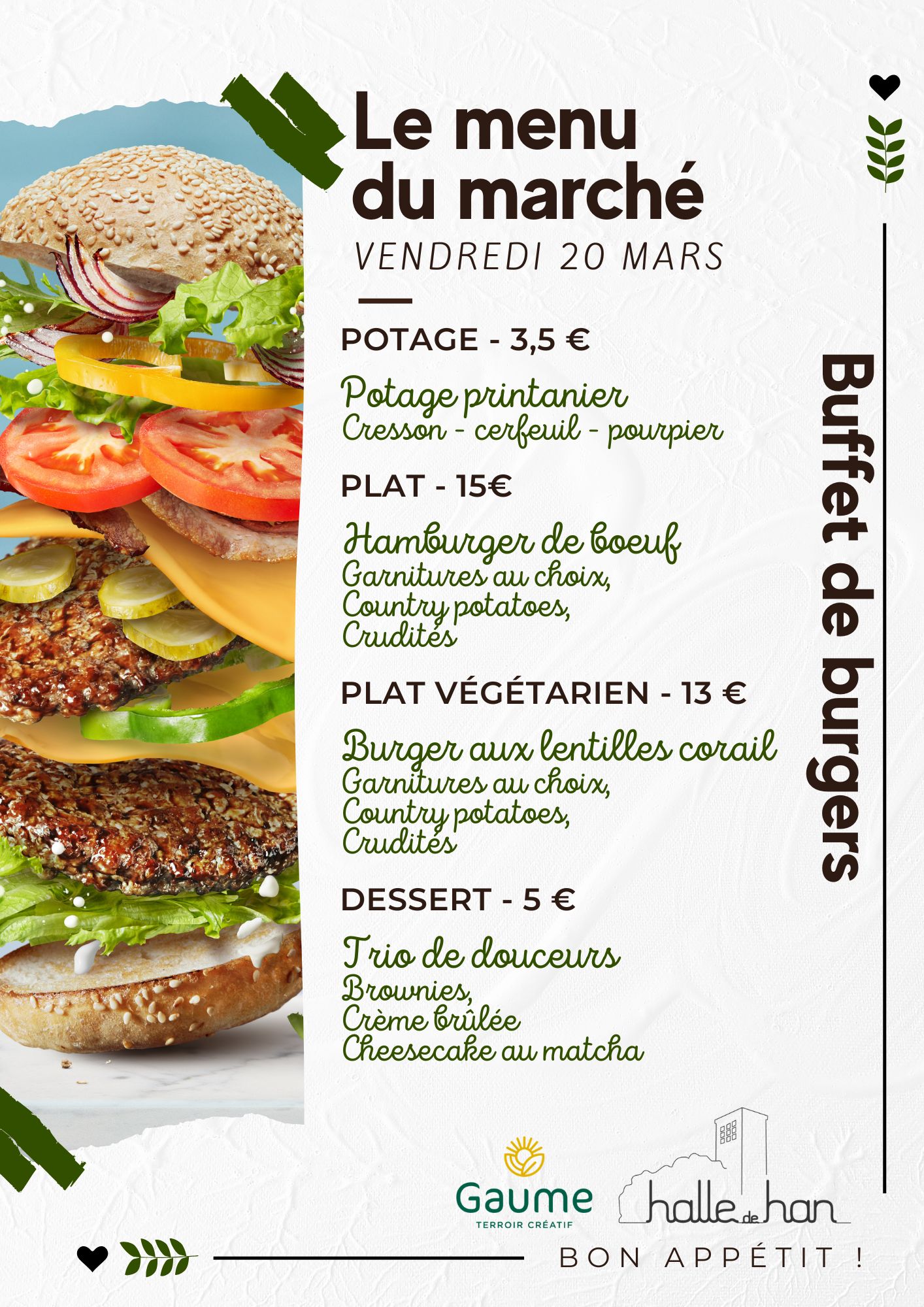 (Le menu est à déguster sur place ou à emporter)