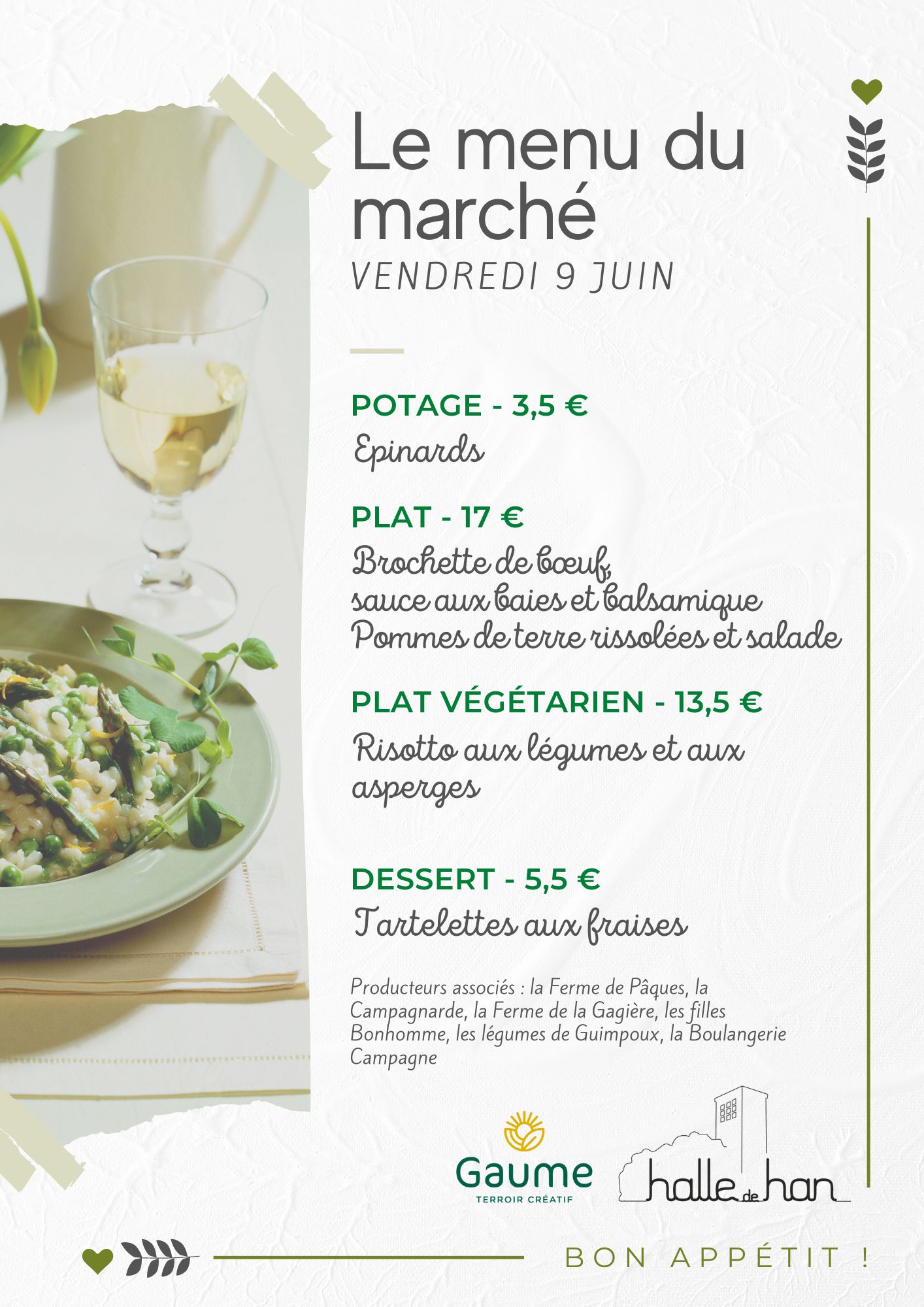 Les commandes sont à enlever à la Halle de Han le vendredi suivant de 18 à 20 heures.